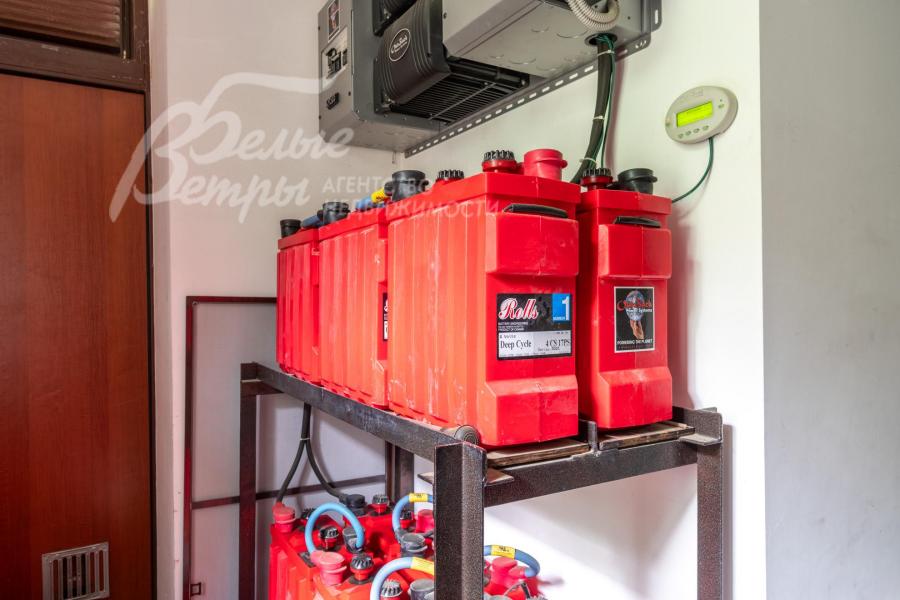 Инженерное обеспечение: все коммуникации разведены по дому, установлены радиаторы Kermi (Германия), электрика Gira (Германия), 4 кондиционера Hitachi (в комнатах с южной стороны). Система отопления – через газовый котел (Vaillant, 95 кВт) с электронным блоком управления. Система горячего водоснабжения – через бойлер косвенного нагрева (Vaillant, на 300 л). Интегрирована многоступенчатая система водоподготовки с умягчением и обезжелезиванием воды WaterBoss (Аквафор) тонкой очистки. На цокольном этаже – принудительная система вентиляции, осушитель GeneralClimate в бассейне. В домашнем кинотеатре – комплекс акустики Cabasse 7+2, проектор Sanyo, экран шириной 2,75 м, американские кресла для домашнего кинотеатра с реклайнерами. Дом оснащен комплексной системой резервного электропитания с использованием солнечной энергии и накопительных аккумуляторов производства Outback Power (Канада). В системе безопасности: датчики движения и открывания, датчики пожарной безопасности и видеонаблюдение
